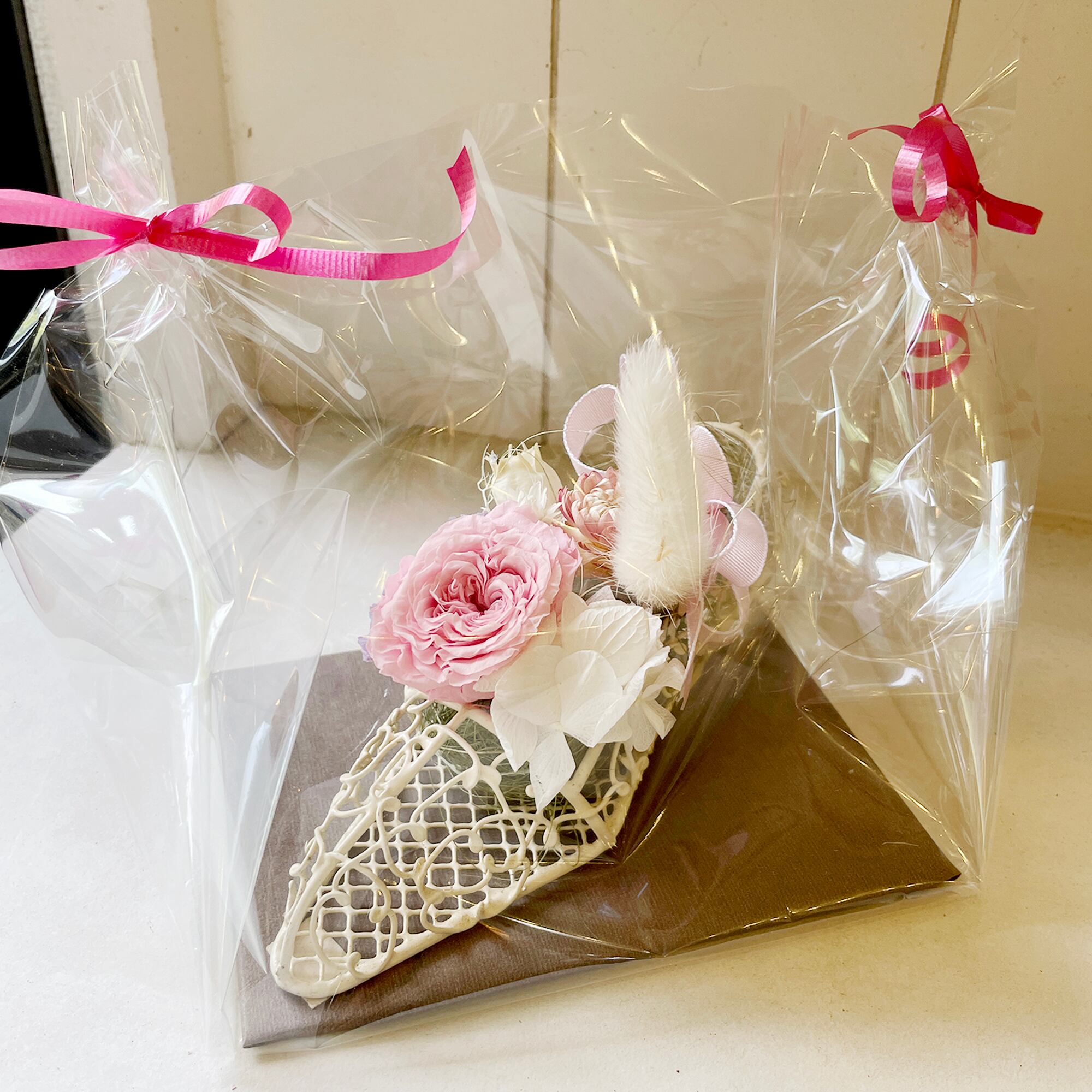 プリザーブドフラワー ヒールアレンジ ピンク
