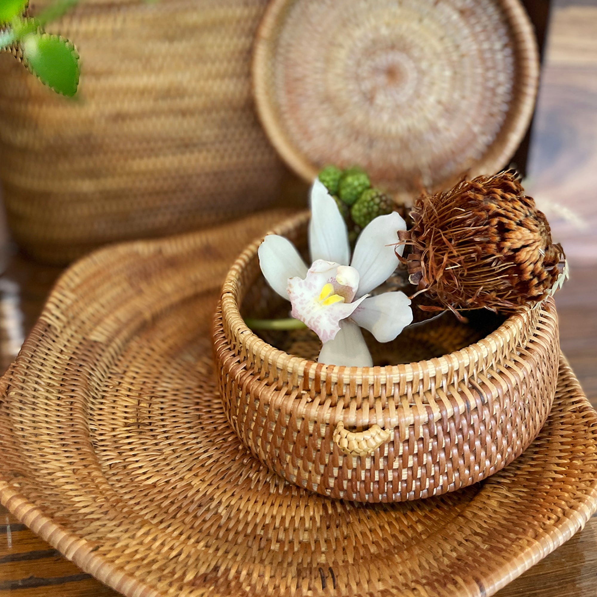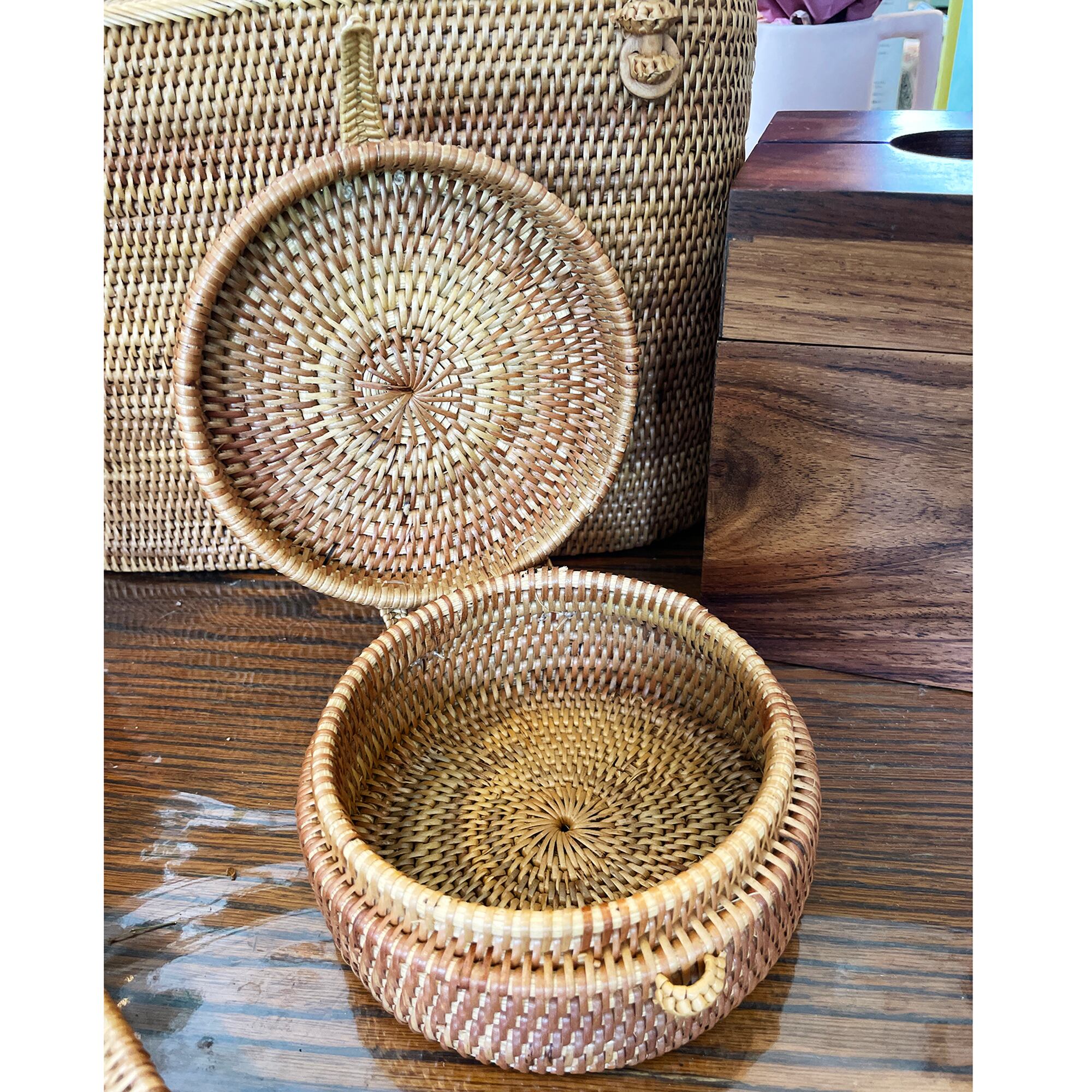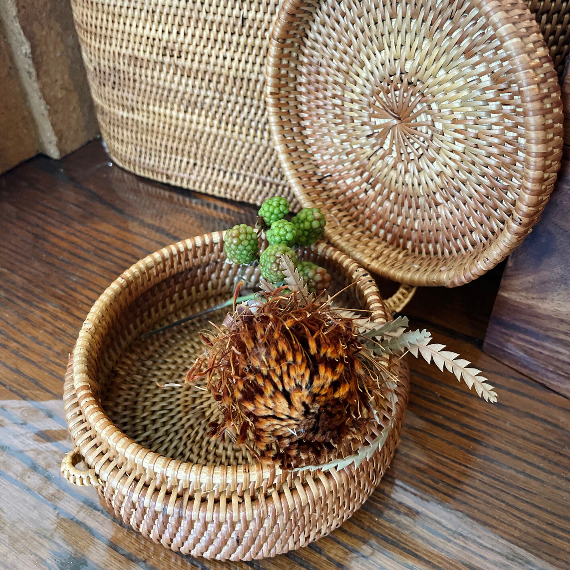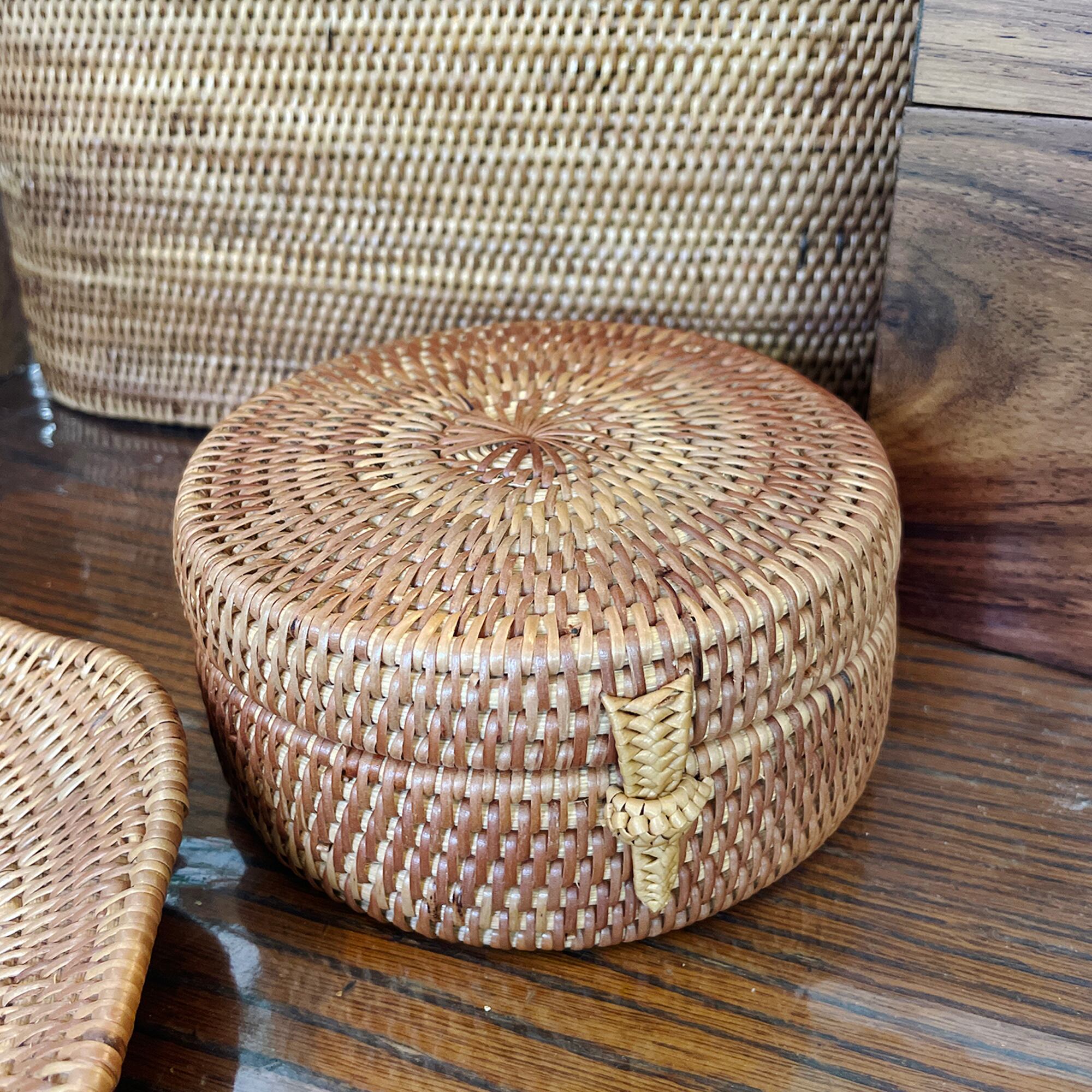バリ雑貨 アタ製 蓋付きラウンドケース